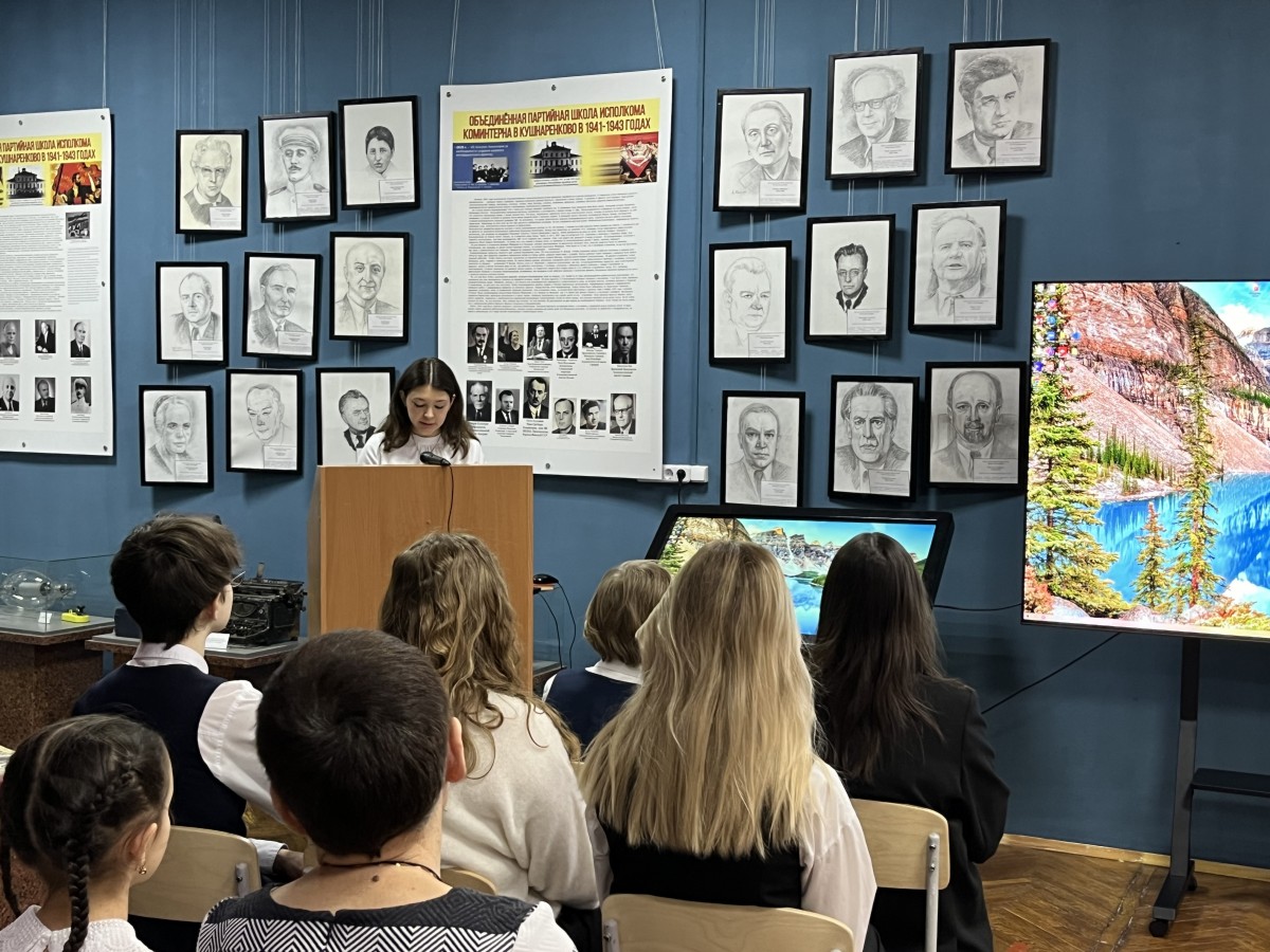 Учащиеся Частного образовательного учреждения Центр образования «Новошкола» по предложению Автономной некоммерческой организации по развитию общественно-культурных инициатив «Центр межкультурного партнерства» 15 февраля 2024 года посетили Кушнаренковский историко-краеведческий музей. Учащиеся с большим интересом ознакомились с экспозициями музея, особенный интерес вызвали стенды и экспонаты музея, посвящённые страницам истории Коминтерна. В 1941-1943 годы исполком организации находился в эвакуации в Башкирии, члены Коминтерна жили в г.Уфе в гостинице «Башкирия», а в селе Кушнаренково была открыта секретная спецшкола для разведчиков. В Уфе работали выдающиеся деятели коммунистического движения Георгий Димитров, Пальмиро Тольятти, Долорес Ибаррури, Морис Торез и другие. Они внесли огромный вклад в победу, многие из них принесли себя на её алтарь. Кроме того, своих детей они почти все отправили на фронт.