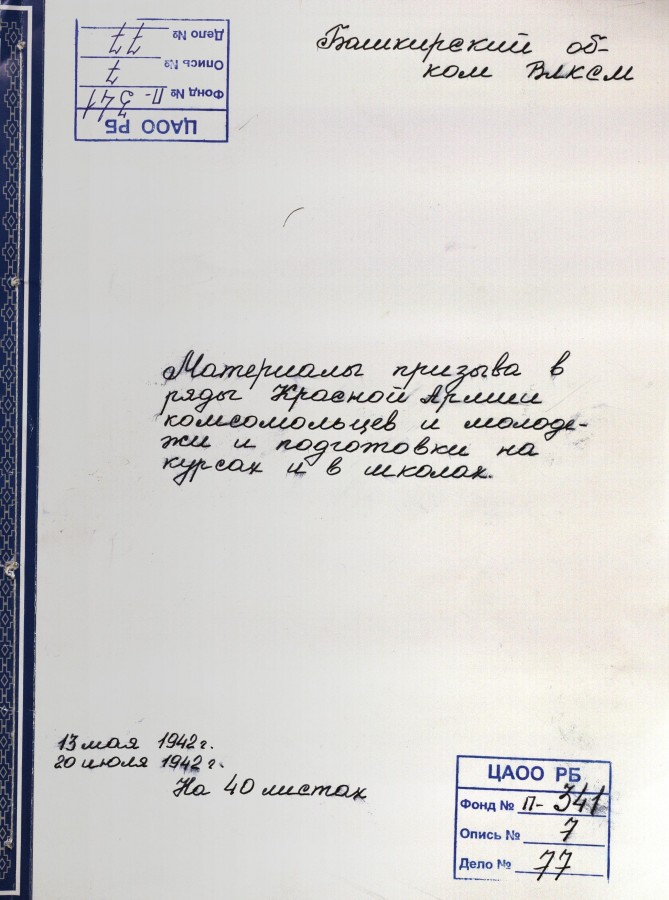Красная Армия в годы Великой Отечественной войны пополняла свои ряды за счет призывников – комсомольцев и молодежи. В фондах Национального архива хранятся уникальные документы о призыве и подготовке молодежи и комсомольцев на курсах, например, об отборе юношей возраста 15-16 лет в школу юнг в 1942 году.