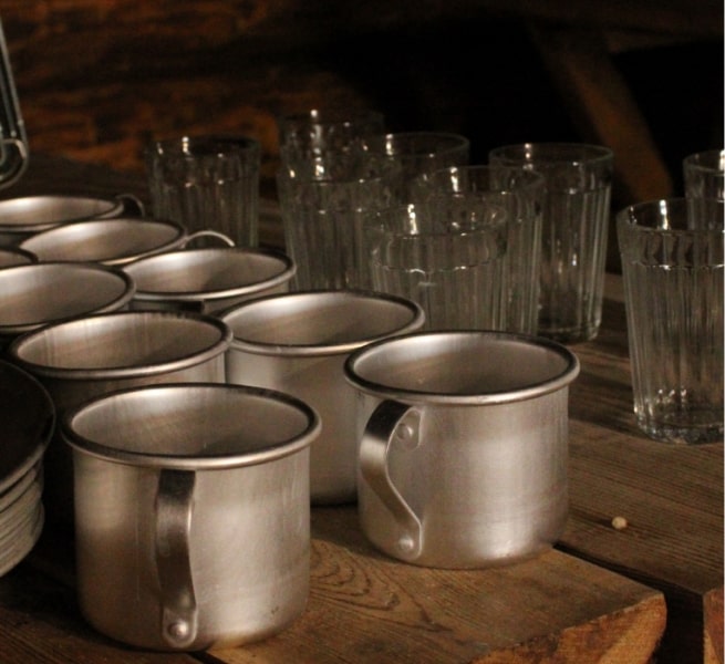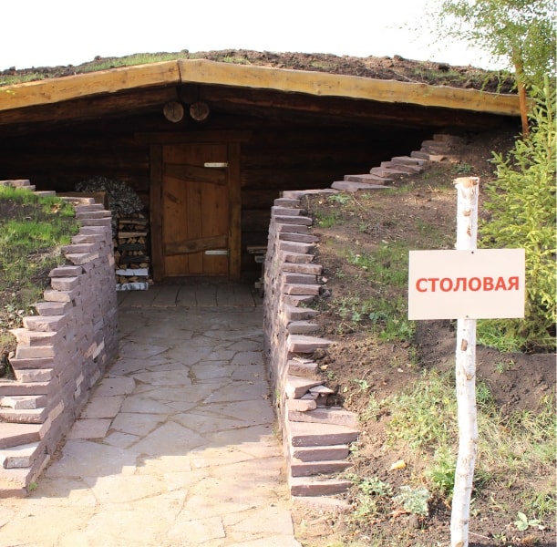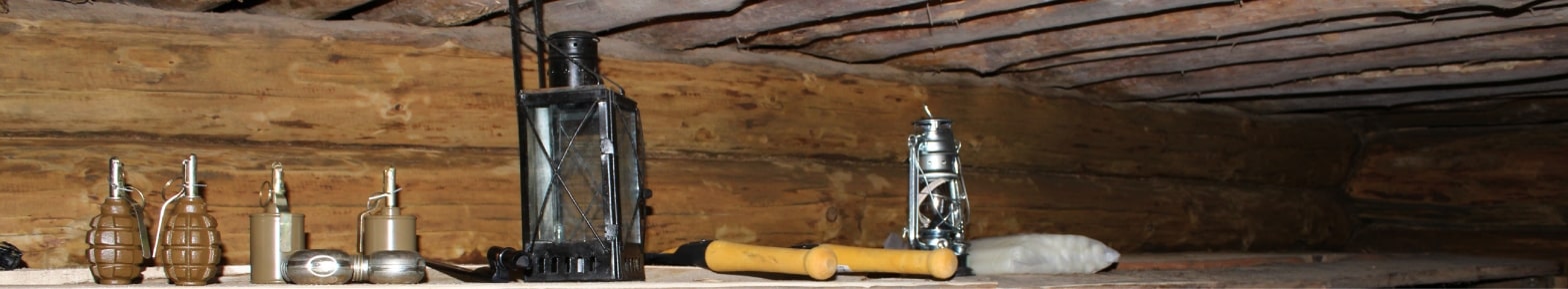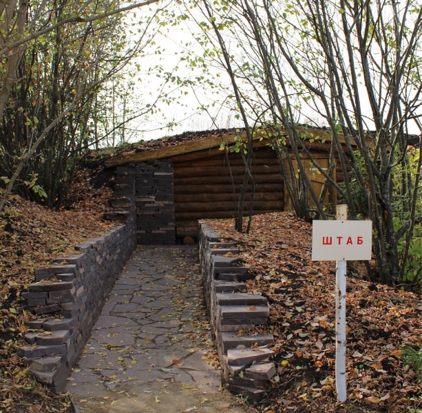 В медпункте воссоздана обстановка небольшой санитарной землянки с набором медицинских инструментов. На складе оружия и боеприпасов можно не только посмотреть, но и потрогать, подержать в руках оружие Великой Отечественной от легендарного пулемета «Максим» до стоящей до сих пор на вооружении гранаты Ф-1. В штабе воссоздана обстановка командирской землянки партизанского отряда, сформированного из части, попавшей в окружение, отсюда и командирские фуражки, униформа. Склад продуктов и кухня дадут представление как питались партизаны. Экспонаты и исторические интерьеры восстановлены на основе документальных свидетельств – фотографий и участников партизанского движения.