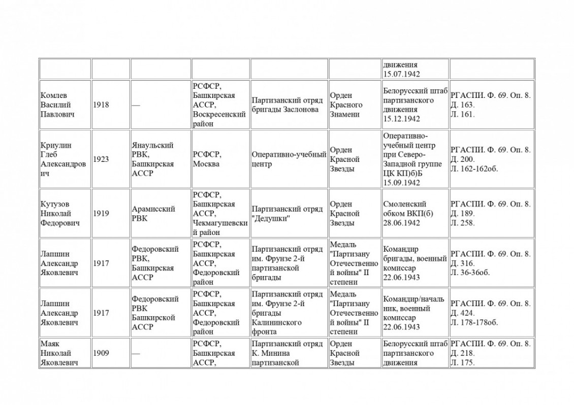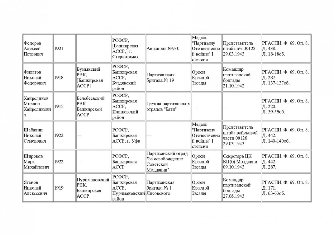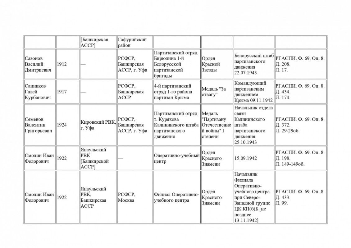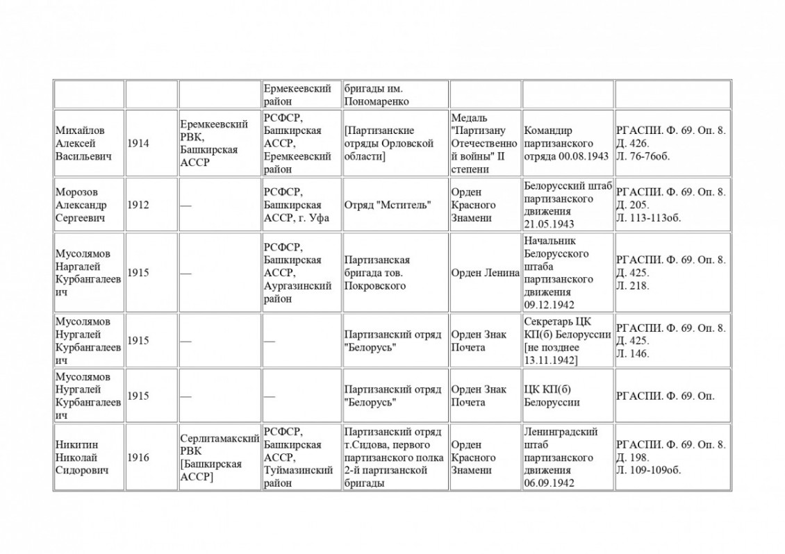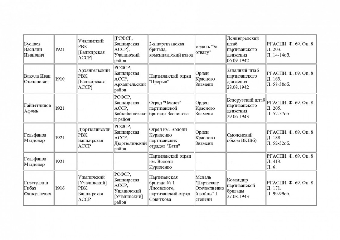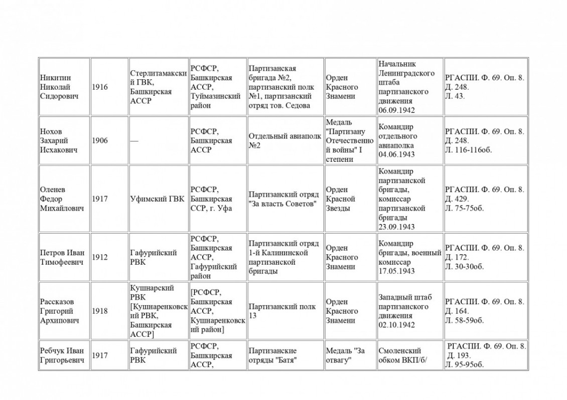 Архивная находка: в РГАСПИ обнаружены данные о 47 партизанах-уроженцах Башкирии