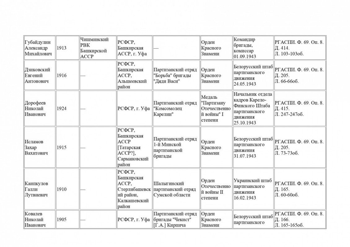 Среди более 8,5 тысяч записей этого архивного фонда выявлены данные об участии в партизанском движении в годы Великой Отечественной войны 47 воинов Красной Армии, призванных военкоматами Башкирской АССР.