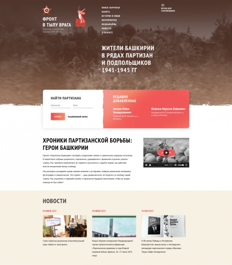 «Фронт в тылу врага» — историко-просветительский портал, посвящённый жителям Башкирии в рядах партизан и подпольщиков 1941-1945 гг.