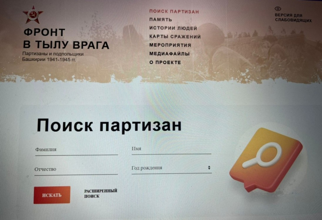 «Фронт в тылу врага» — историко-просветительский портал, посвящённый жителям Башкирии в рядах партизан и подпольщиков 1941-1945 гг.