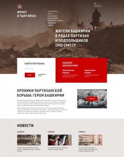 «Фронт в тылу врага» — историко-просветительский портал, посвящённый жителям Башкирии в рядах партизан и подпольщиков 1941-1945 гг.