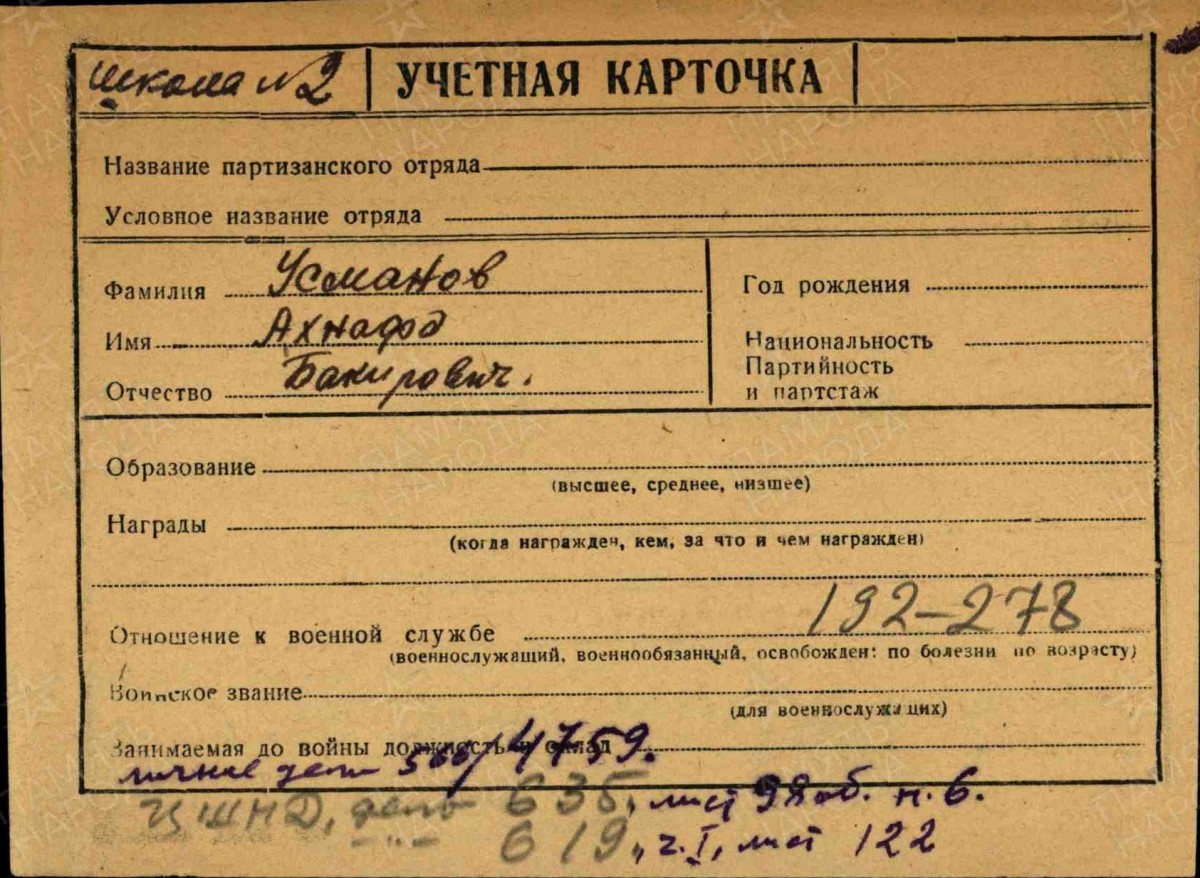 Житель г. Екатеринбурга Евгений Тройнин поделился новыми сведениями об участниках партизанского движения из Башкирии, предоставив копии архивных документов на Крайнову Клавдию Дмитриевну из Давлекановского района, Шайхуллина Хамзу Габдулиновича из Нуримановского района и Усманова Ахнафа Бакировича из Миякинского района.