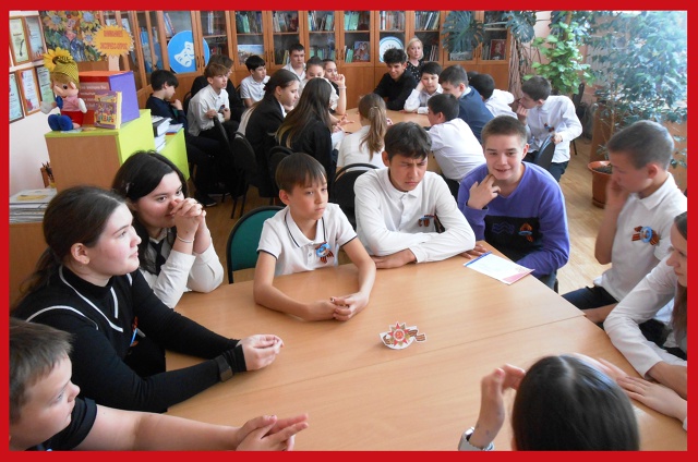 Интерактивная программа сопровождалась играми и викторинами. Школьники решали загадки, участвовали в игре «лото», собирали пазлы и изготавливали памятные знаки в форме звездочки на мастер-классе «Георгиевская ленточка». Самым трогательным моментом стала возможность написать письма современным защитникам Родины.