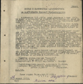2 декабря 1942 г. на участке Бегомль-Плещеницы со взводом, путем спиливания столбов и рубки проводов, уничтожил 1100 метров телефоно-телеграфной линии.