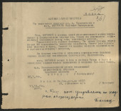 В сентябре 1941 г. из госпиталя бежал, поймали в р-не озера Выгановского, отправлен в м. «Свянто-Воля» - бежал, поймали в р-не «Картуз-Береза», отправлен ж.д. эшелоном в Германию, - бежал из вагона в р-не Бреста и снова пошел на Восток. В октябре м. 41 г. остановился в дер. Сосновке Слонимского р-на Барановичской обл. у хозяина до мая месяца 42 г. В мае месяце 42 г. ушел в Партизаны, леса Косовского р-на. В Партизанах с мая м. по август м. 42 г. работал по вооружению отряда им. Щорса. Доставлено нашей группой в распоряжение командования отряда им. Щорса около 250 винтовок, 11 пулеметов и 20-25 000 патрон.