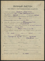 Был в плену с августа 1942 г. по июнь 1943 г. Прибыл в партизанский отряд из лагеря военнопленных из г. Бобруйска 12 июня 1943 г.