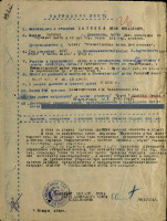 В завязавшейся схватке с боевым охранением противника уничтожил нескольких солдат и, будучи ранен осколками ручной гранаты (в обе ноги), вместе со старшиной Романовым организовал вынос раненых и прикрывал отход группы огнем автомата. Лишь после этого разрешил старшине Романову вынести себя со схватки”.