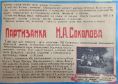 До 17 мая 1942 г. отряд, в его составе Соколова Н.А. вели разведку огневых позиций противника. Соколова Н.А. занималась составлением и распространением антигитлеровских листовок, сбор разведанных о гитлеровской армии.