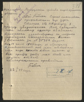 19.7.43 Участвовал с группой в 5 человек в организации крушения вражеского эшелона на ж.д. Подборье - Полоцк. В результате крушения уничтожено: 1 паровоз, 19 вагонов с углем, убита охрана эшелона в количестве 17 человек.