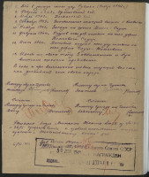 В течение месяца мы пробирались на восток в поисках партизан и нашли их. В партизанском отряде Ивана Ивановича было около 50 человек. На весь отряд был один станковый пулемет, но и тот неисправный. Пулемет я починил, и нас оставили в отряде, закрепив за нами этот пулемет. Через некоторое время отряд попал в засаду и был разбит. В то время я и Разуменко были на задании. По возвращении попали в отряд лейтенанта Ивана Николаевича Тараховича (партизанский псевдоним его - Дунаев), были зачислены в бригаду имени В.И. Чапаева, в которой находился с июня 1942 по 22 июля 1944 г.
