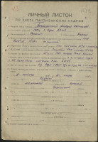 Член ВЛКСМ с 1938 г. Образование: 10 классов, полковая школа 25 т.п. г. Остров 1940 г.