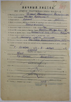 На фронте с 22.06 по 25.08.1941 г. 320 ап 186 див. С 25.08.1941 г. по 05.12.1943 г. был в лагере военнопленных в г.Полоцк. Прибыл в отряд с Народной добровольческой армии. В отряде себя не оправдал.