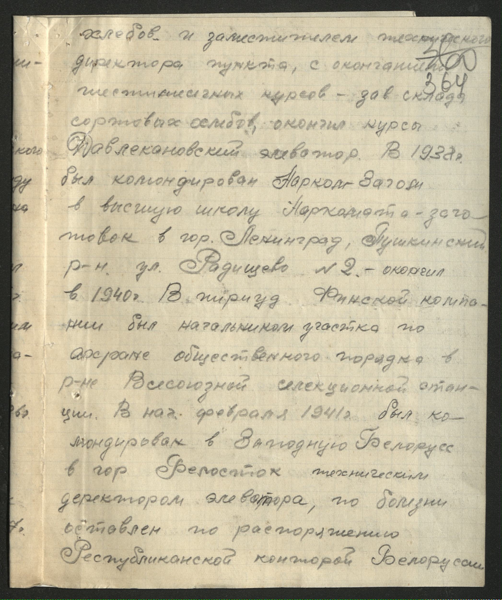 В период 1935 г. работал в межрайторге старшим мастером хлебопечения в хлебопекарне № 2, с окончанием шестимесячных курсов уволился. В период 1936 г. работал в Бирском укрупненном пункте З/зерно в качестве лаборанта с окончанием трехмесячных курсов лаборантов. В период 1937 г. работал зав. складов сортовых З/зерно в гор. Костюковичи на отдыхе с назначением в этом же году на пункт З/зерно тех-директором и зав.лаборантом.