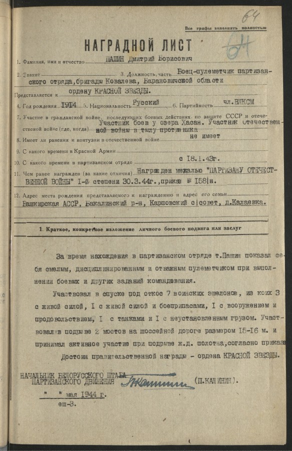 В годы Великой Отечественной войны тысячи уроженцев Башкирии сражались не только на передовой, но и в глубоком тылу врага. Среди них – Дмитрий Борисович Пашин, уроженец деревни Калаевка Бакалинского района Республики Башкортостан, чей боевой путь мог бы стать сюжетом для военного блокбастера.